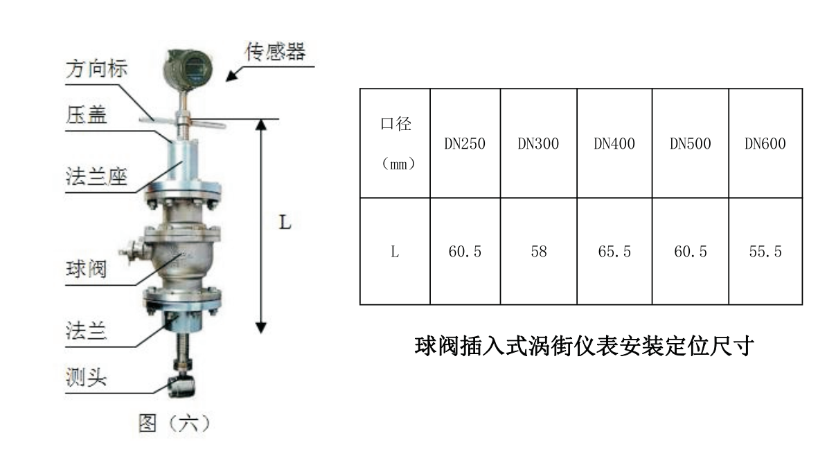 4. 調節絲杠,使插入深度符合要求(保證測頭中心軸線和管道中心軸線重合),流體流向必須與方向標上的指示箭頭保持一致。
